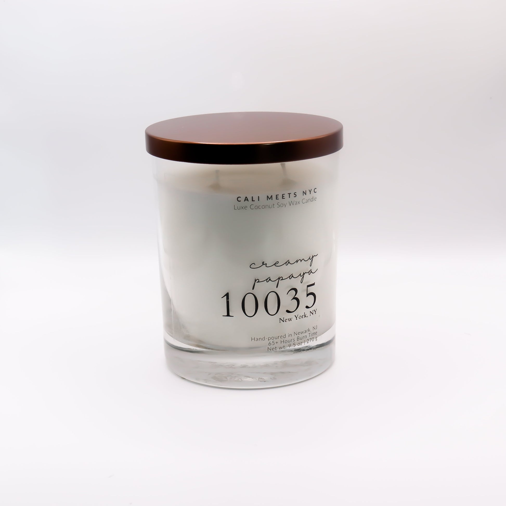 The 10035 Creamy Papaya Coconut Soy Candle is a decadent creamy papaya dream. Filled with delightfully sweet tropical notes rounded by a smidgen of vanilla that boasts a euphoric fragrance that'll have you craving for more. Much like summer nights in Harlem, it is defined by the freshness and sweetness in the air.