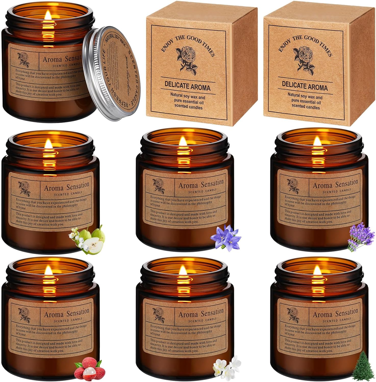 6 Scents of Candles: in this package, you will receive 6 uniquely scented soy candles, each emitting its distinct fragrance, including English pear and freesia, bluebell, lavender, lychee white tea, white tea orchid, and foggy forest, these candles are designed to complement your mood and create an immersive sensory experience