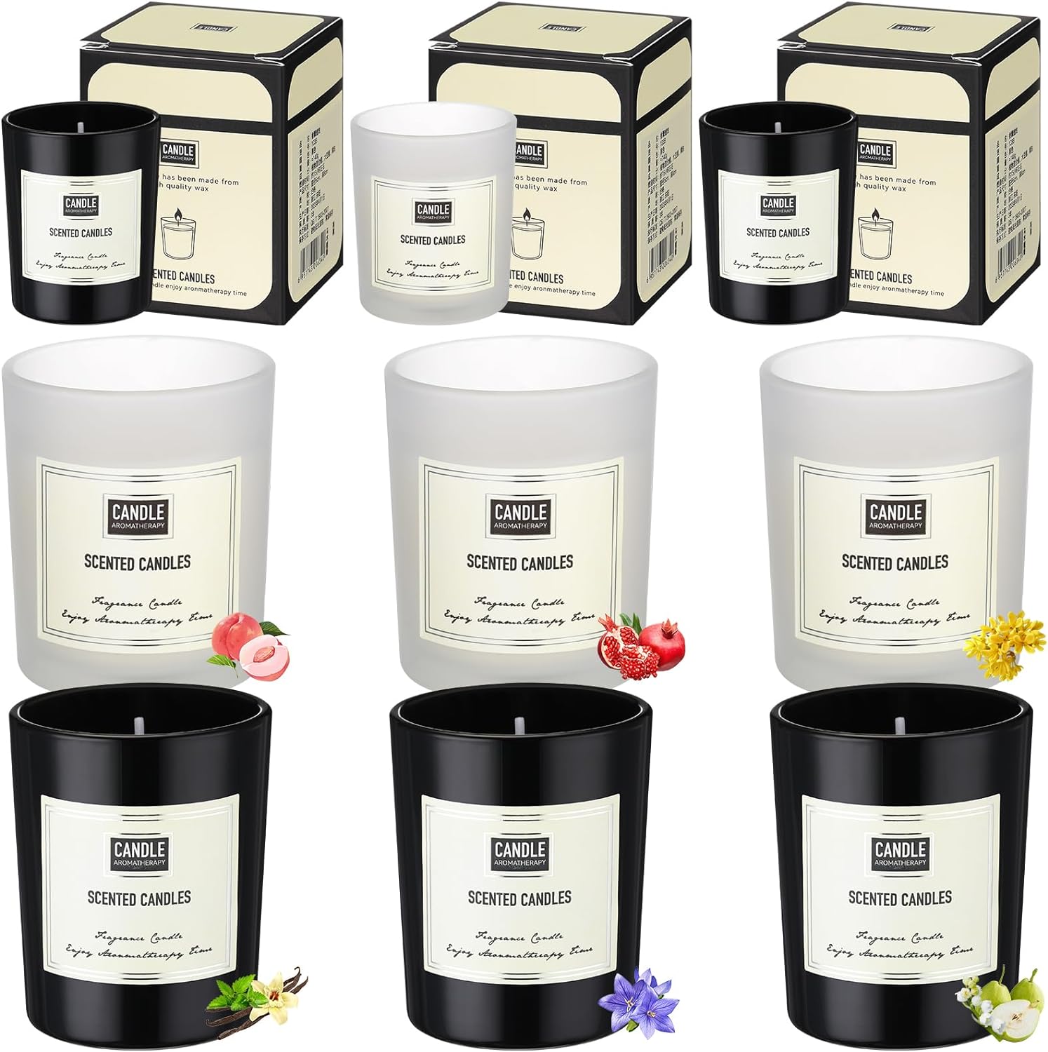 6 Scents of Candles: in this package, you will receive 6 uniquely scented soy candles, each emitting its distinct fragrance, including white peach oolong, red pomegranate, golden osmanthus, North Sea floral, bluebell, and English pear and freesia, these candles are designed to complement your mood and create an immersive sensory experience