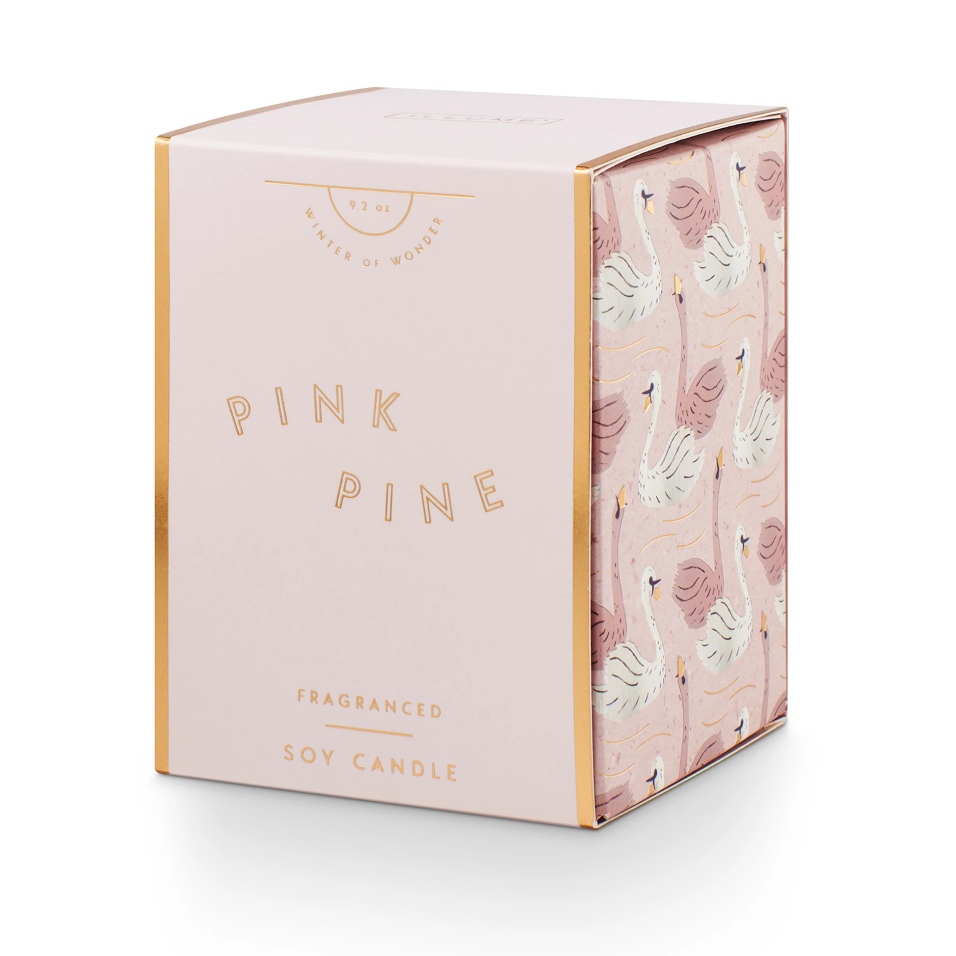 This Gifted Glass Candle in Pink Pine is like a sparkly morning on the pond. It has notes of pine, amber, and sweet melon.