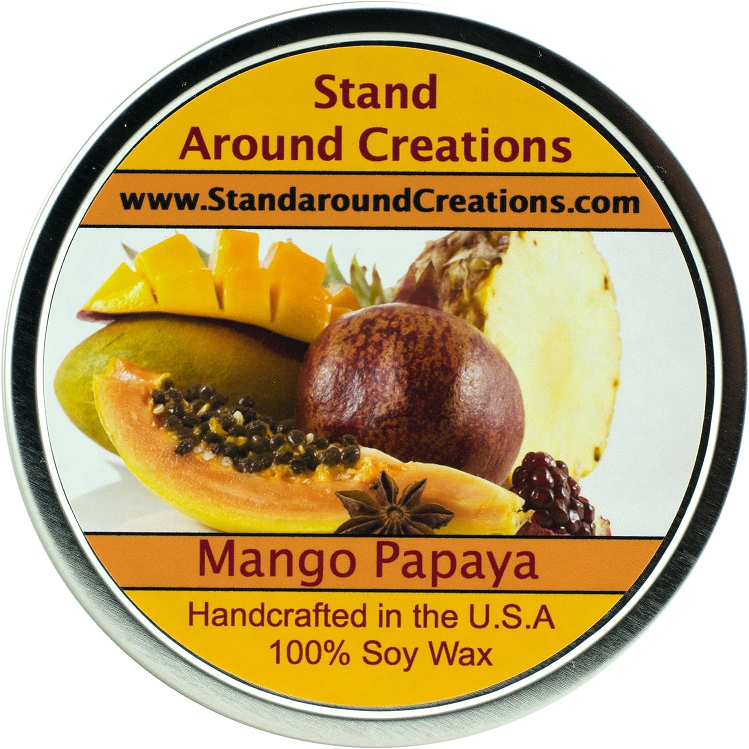 Premium 100% All Natural Soy Wax Aromatherapy Candle - 16oz Tin -Mango and Papaya: an Uplifting Blend of Sun-Kissed Mango and Papaya. A Very Popular Fragrance Oil You're Sure to Love.